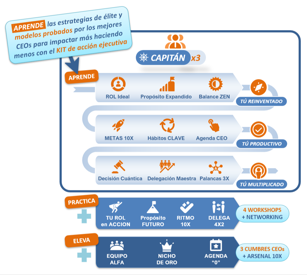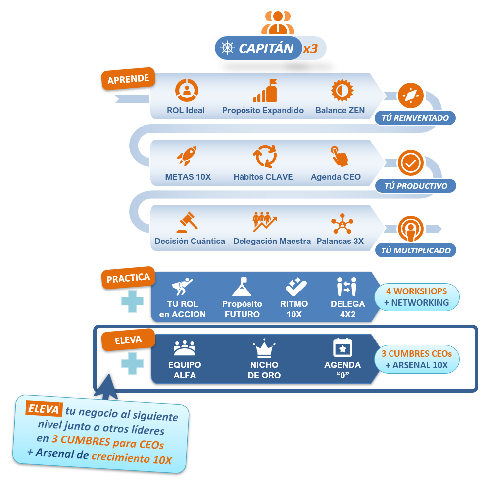 En solo 2 semanas redefinirás tu identidad como líder (no como operador), descubrirás tu rol ideal según tus talentos únicos, y calibrarás el rumbo estratégico de tu negocio para crecer con una operación simplificada.