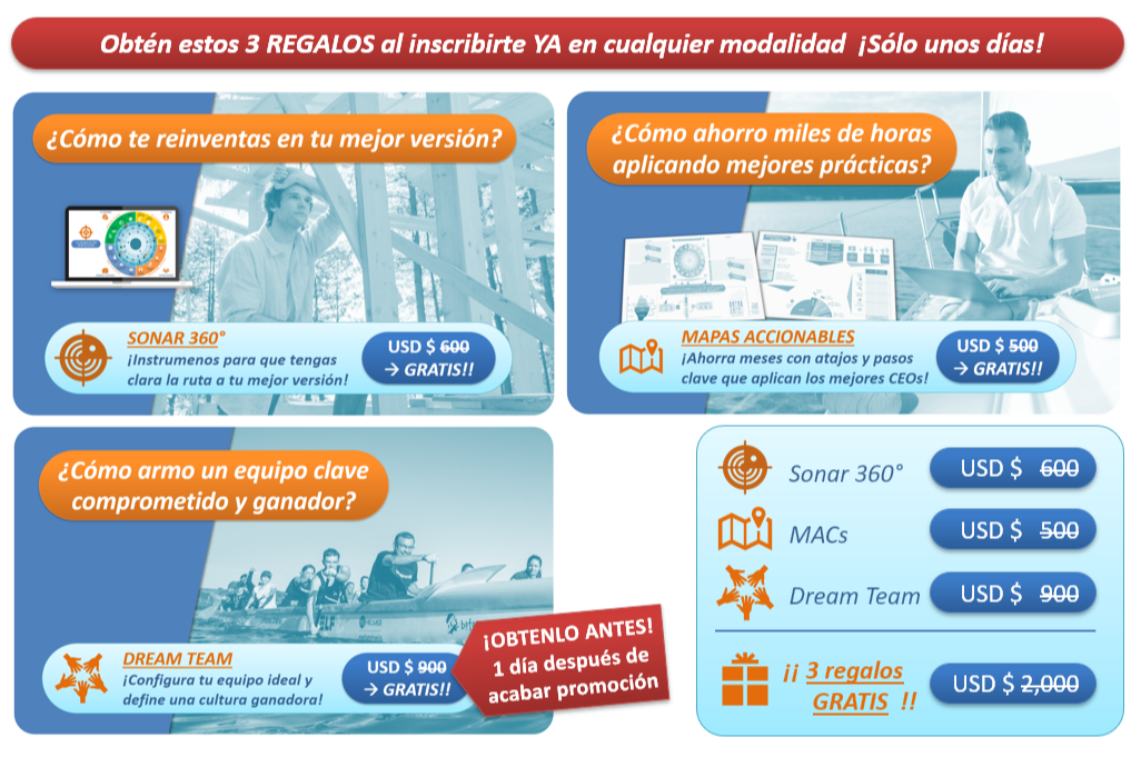 Ideal para empresarios, dueños de pymes o profesionistas independientes o directivos que quieren catapultar su impacto y productividad.