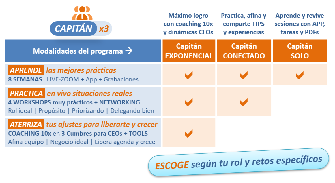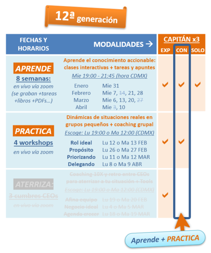 La 12a generación del programa CAPITÁN x3 tendrá 8 semanas de CLASES + 4 WORKSHOPS