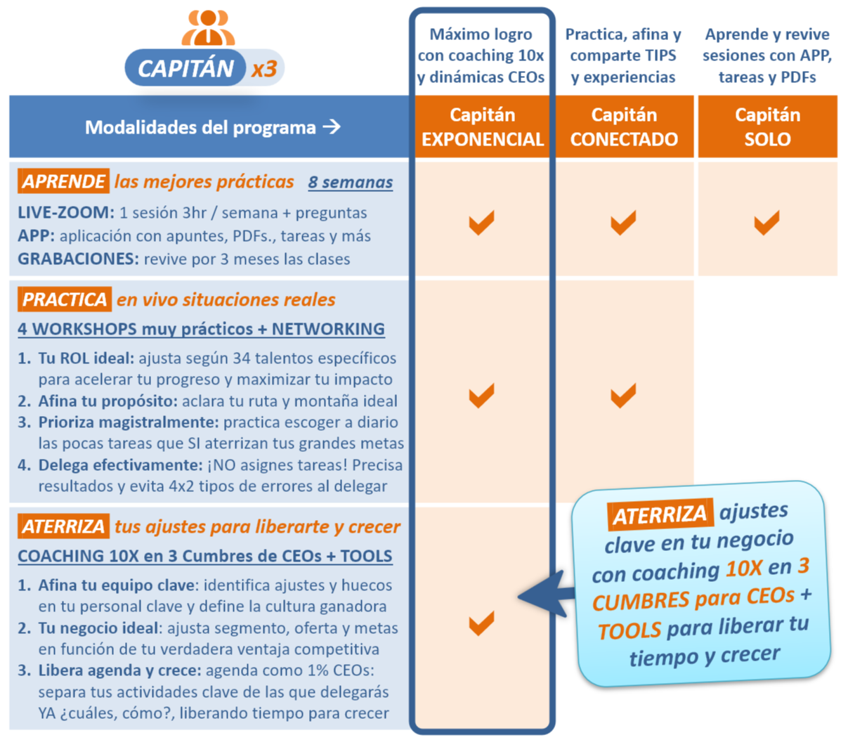 La 12a generación del programa CAPITÁN x3 tendrá 8 semanas de CLASES + 4 WORKSHOPS + 3 CUMBRES para CEOs